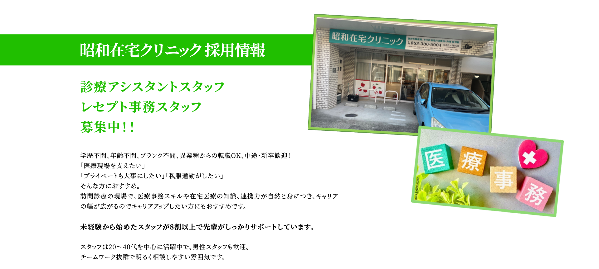 訪問診療の現場で、医療事務スキルや在宅医療の知識、連携力が自然と身につき、キャリアの幅が広がるのでキャリアアップしたい方にもおすすめです。